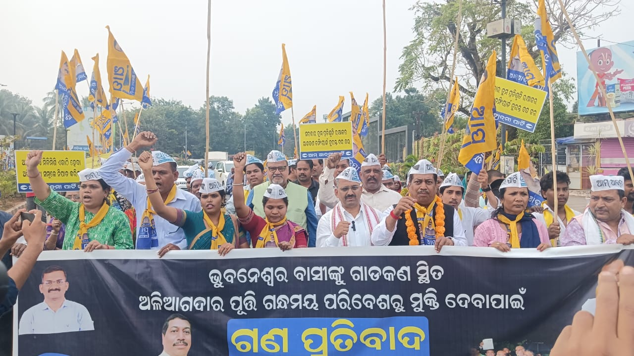 ଗାଡ଼କଣରେ ଅଳିଆ ଗଦା ସ୍ଥାନାନ୍ତରଣ ଦାବିରେ ଆମ୍ ଆଦ୍ମୀ ପାର୍ଟିର ବିକ୍ଷୋଭ