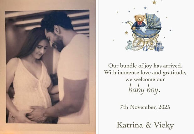 ଅଭିନେତାମାନେ ନୀଳ କ୍ରାଡଲରେ ଏକ ଟେଡିର ଚିତ୍ର ସହିତ ଏକ କାର୍ଡ ସେୟାର କରିଛନ୍ତି ଯେଉଁଥିରେ ଲେଖା ଅଛି, “ଆମର ଆନନ୍ଦର ଗଣ୍ଠି ଆସିଯାଇଛି। ଅପାର ପ୍ରେମ ଏବଂ କୃତଜ୍ଞତାର ସହିତ, ଆମେ ଆମର ଶିଶୁ ପୁତ୍ରକୁ ସ୍ୱାଗତ କରୁଛୁ। ୭ ନଭେମ୍ବର, ୨୦୨୫ କ୍ୟାଟ୍ରିନା ଏବଂ ଭିକି”