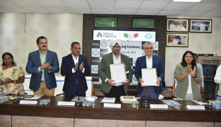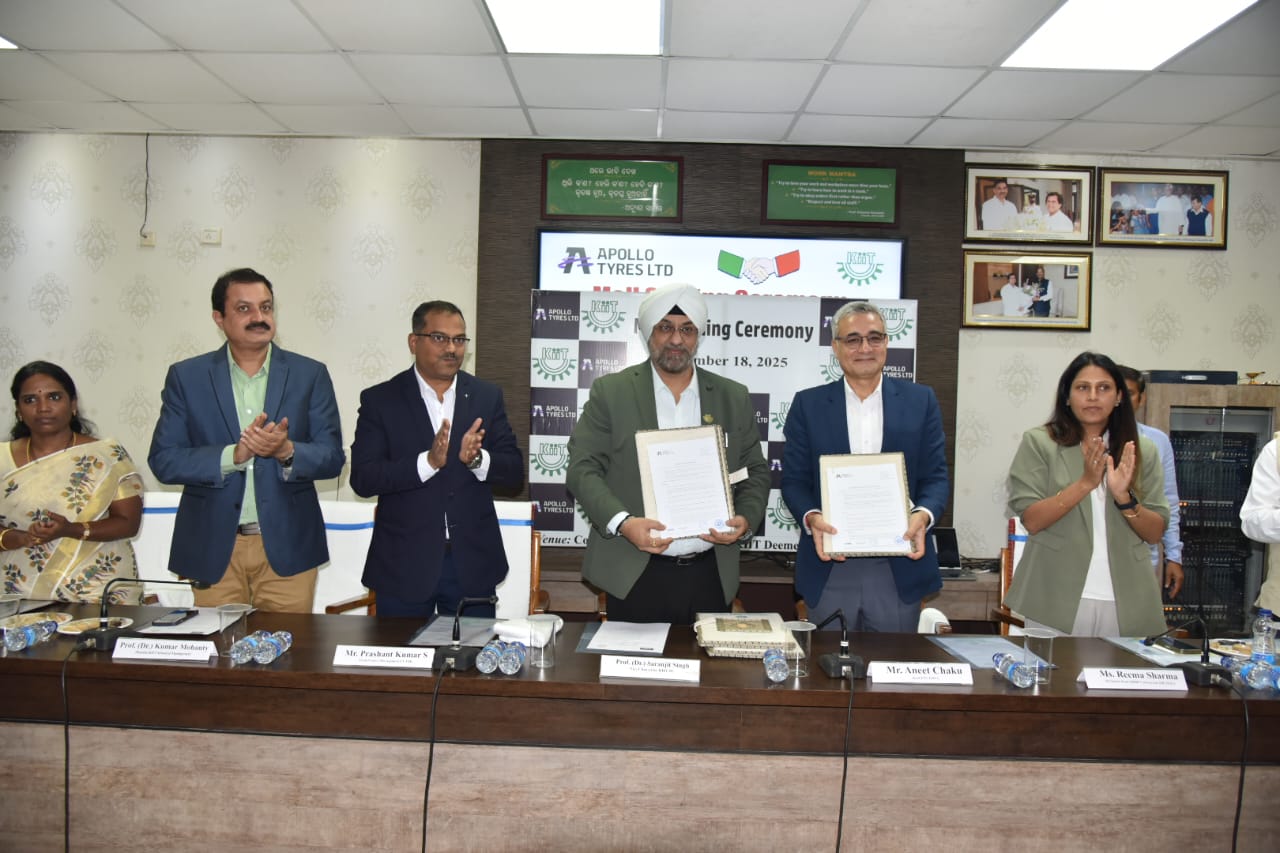ଭୁବନେଶ୍ୱର : ଭାରତୀୟ ଅଟୋମୋଟିଭ ଓ ଶିକ୍ଷା କ୍ଷେତ୍ର ପାଇଁ ଏକ ଅଗ୍ରଗାମୀ ପଦକ୍ଷେପରେ ଆପୋଲୋ ଟାୟାର୍ସ ଲିମିଟେଡ ଓ କଳିଙ୍ଗ ଇନ୍ଷ୍ଟିଚ୍ୟୁଟ ଅଫ୍ ଇଣ୍ଡଷ୍ଟ୍ରିଆଲ ଟେକ୍ନୋଲୋଜି (କିଟ୍), ଭୁବନେଶ୍ୱର ପକ୍ଷରୁ ଆଜି ଇଞ୍ଜିନିୟରିଂ ଛାତ୍ରଛାତ୍ରୀଙ୍କ ପାଇଁ ଟାୟାର ଟେକ୍ନୋଲୋଜି ଉପରେ ଏକ ସ୍ୱତନ୍ତ୍ର ଇଲେକ୍ଟିଭ / ମଡ୍ୟୁଲର ଶୁଭାରମ୍ଭ କରିବା ପାଇଁ ଏକ ପ୍ରଥମ ଧରଣର ରଣନୈତିକ ସହଭାଗିତା ଘୋଷଣା କରାଯାଇଛି।