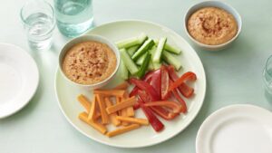 ଗାଜର, କାକୁଡ଼ି, ସେଲେରି ଓ ବେଲ୍ ପେପର୍ ପରି କଂଚା ପନିପରିବା ଷ୍ଟିକ୍ସ ଅତ୍ୟଧିକ କମ୍ କ୍ୟାଲୋରି ଓ ଫାଇବରରେ ସମୃଦ୍ଧ। ଏଗୁଡ଼ିକୁ ଅଳ୍ପ ପରିମାଣର ହମୁସ୍ ସହ ଖାଇଲେ, ଏକ ପୋଷଣଦାୟକ ଓ ସନ୍ତୁଷ୍ଟିଦାୟକ ନାସ୍ତା ହୋଇଯାଏ।