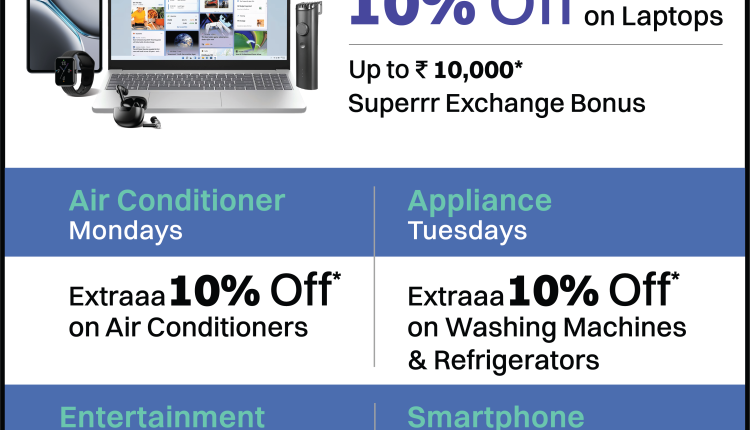 କ୍ରୋମାରେ ଲାପଟପ୍, ସ୍ମାର୍ଟଫୋନ୍, ଟିଭି, ୱାସିଂ ମେସିନ ଓ ରେଫ୍ରିଜରେଟର ଉପରେ ୧୦% ଅତିରିକ୍ତ ରିହାତି