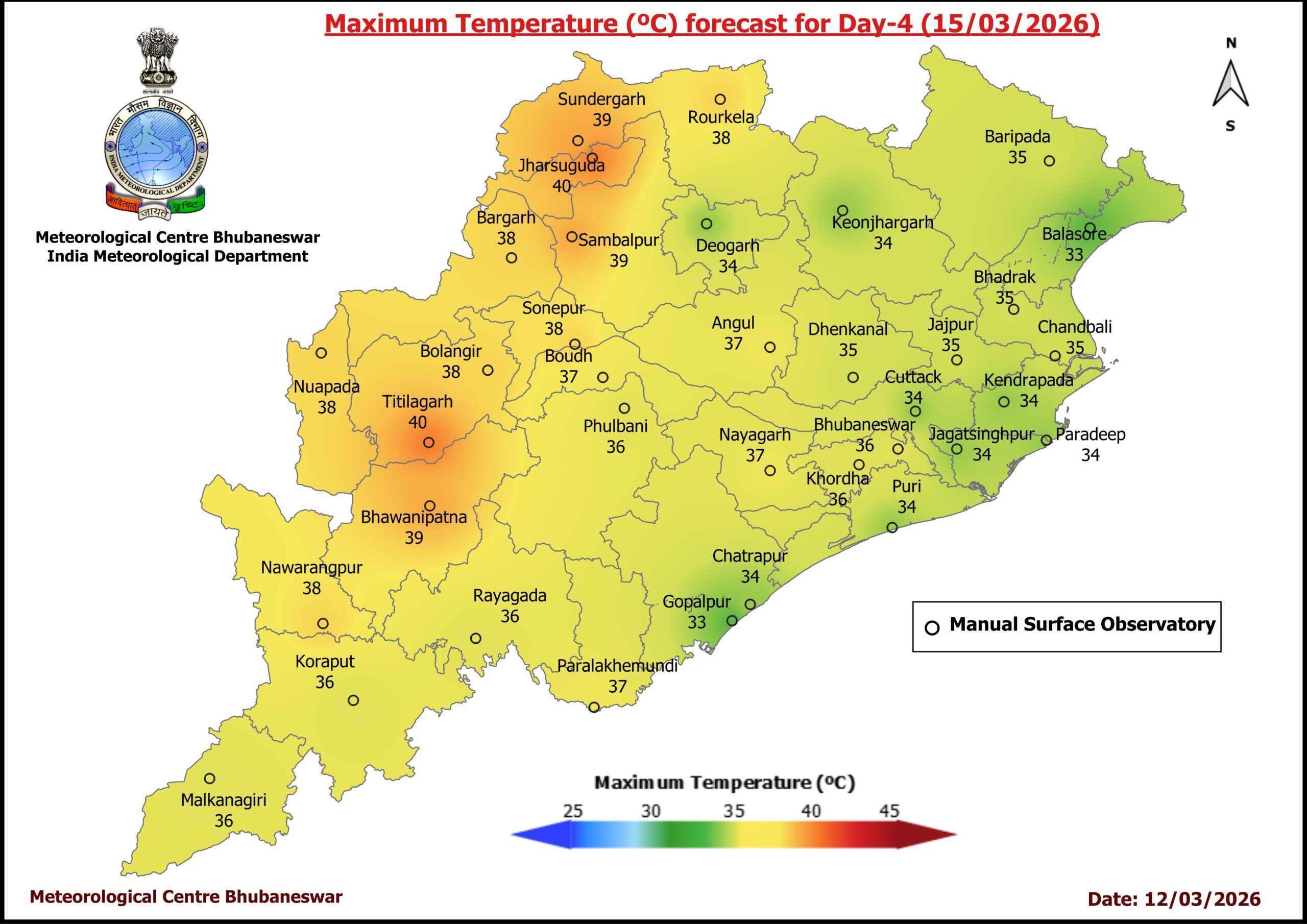 ଭୁବନେଶ୍ଵର,୧୨/୦୩:ରାଜ୍ୟରେ ଦିନକୁ ଦିନ ତାତିର ପ୍ରକୋପ ବଢ଼ିବାରେ ଲାଗିଛି। ଗ୍ରୀଷ୍ମ ଋତୁ ଆରମ୍ଭ ହେବା ସହିତ ଅନେକ ସ୍ଥାନରେ ତାପମାତ୍ରା ଉର୍ଦ୍ଧ୍ୱଗାମୀ ହେଉଛି। ବିଶେଷକରି ପଶ୍ଚିମ ଓଡ଼ିଶାରେ ତାତିର ପ୍ରଭାବ ଅଧିକ ଦେଖାଯାଉଛି।
