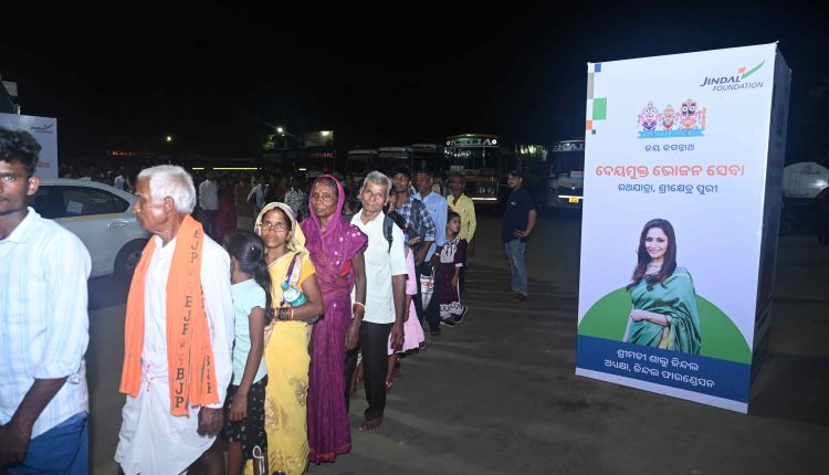 ଜିନ୍ଦଲ ଷ୍ଟିଲ୍ ଆଣ୍ଡ୍ ପାୱାରର ଅଧ୍ୟକ୍ଷ ଶ୍ରୀ ନବୀନ ଜିନ୍ଦଲଙ୍କ ଦୂରଦୃଷ୍ଟିରେ ଅନୁପ୍ରାଣିତ ହୋଇ, ଜିନ୍ଦଲ ଫାଉଣ୍ଡେସନ୍ ୨୦୧୫ ମସିହାରୁ ରଥଯାତ୍ରା ମହୋତ୍ସବ ସମୟରେ ଭକ୍ତମାନଙ୍କୁ ସେବା କରିଆସୁଛି । ୨୬ ଜୁନ୍ ୨୦୨୫ ରେ ନବଯୌବନ ଦର୍ଶନ ଦିନ ଆରମ୍ଭ ହୋଇଥିବା ଏହି ସେବା ୬ ଜୁଲାଇ ୨୦୨୫ ରେ ସୁନାବେଶ ପର୍ଯ୍ୟନ୍ତ ଜାରି ରହିବ।
