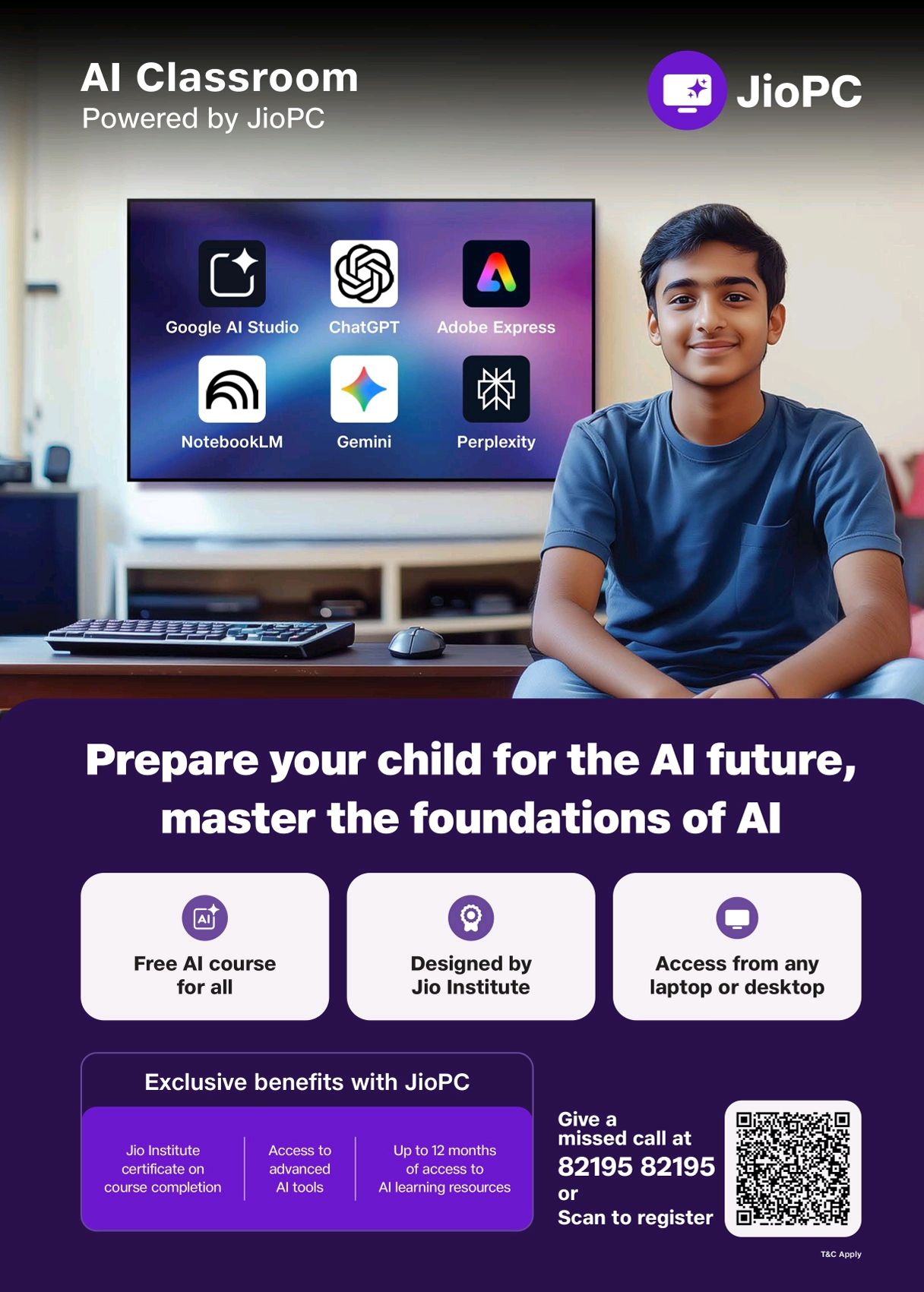 କମ୍ପାନୀ ଅନୁଯାୟୀ, ଭାରତକୁ କୃତ୍ରିମ ବୁଦ୍ଧିମତ୍ତା କ୍ଷେତ୍ରରେ ଏକ ସୁପରପାୱାର କରିବା ମିଶନକୁ ଆଗକୁ ବଢ଼ାଇବା ପାଇଁ ଜିଓ ପିସି ଏବଂ ଜିଓ ଇନଷ୍ଟିଚ୍ୟୁଟ୍ ଏଆଇ କ୍ଲାସରୁମ୍ ଆରମ୍ଭ କରିଛନ୍ତି। ବ୍ୟକ୍ତିଗତ କମ୍ପ୍ୟୁଟର, ଡେସ୍କଟପ୍ କିମ୍ବା ଲାପଟପ୍ ବ୍ୟବହାର କରୁଥିବା ଯେକୌଣସି ବ୍ୟକ୍ତି ଏହି କୋର୍ସର ଲାଭ ନେଇପାରିବେ। ତେବେ, ପ୍ରମାଣପତ୍ର (ସାର୍ଟିଫିକେଟ) କେବଳ ଜିଓ ପିସି ବ୍ୟବହାର କରି କୋର୍ସ ସମାପ୍ତ କରୁଥିବା ବ୍ୟକ୍ତିଙ୍କ ପାଇଁ ଉପଲବ୍ଧ ହେବ। ଅନ୍ୟମାନଙ୍କୁ ଏକ ସମାପ୍ତି ବ୍ୟାଜ୍ ପ୍ରଦାନ କରାଯିବ। ଏହି ପାଠ୍ୟକ୍ରମଟି http://www.jio.com/ai-classroom ରେ ଉପଲବ୍ଧ।