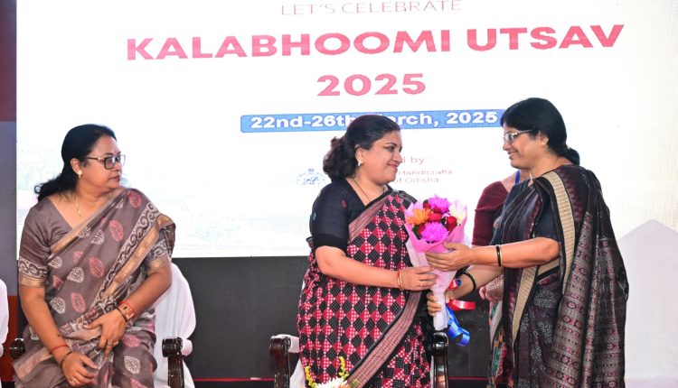 ଭୁବନେଶ୍ଵର: ସ୍ଥାନୀୟ ଓଡିଶା ହସ୍ତଶିଳ୍ପ ସଂଗ୍ରହାଳୟଠାରେ ଆଜିଠୁ ଆରମ୍ଭ ହୋଇଛି ସପ୍ତମ କଳାଭୁମି ଉତ୍ସବ । ଏହି ୫ ଦିନିଆ ଉତ୍ସବକୁ ହସ୍ତତନ୍ତ, ବୟନ ଓ ହସ୍ତଶିଳ୍ପ ବିଭାଗର କମିଶନର ତଥା ଶାସନ ସଚିବ ଶ୍ରୀମତୀ ଗୁହା ପୁନମ ତାପସ କୁମାର ଉଦ୍ଘାଟନ କରିଛନ୍ତି । ଏହି ଅବସରରେ ସେ କହିଛନ୍ତି, ଓଡ଼ିଶାର ଗରିମାମୟ ହସ୍ତତନ୍ତ ଓ ହସ୍ତଶିଳ୍ପର ସମୃଦ୍ଧ ପରମ୍ପରାକୁ ଆଗେଇ ନେବା ପାଇଁ ବିଭାଗ ପ୍ରତିଶ୍ରୁତିବଦ୍ଧ ଅଛି ।