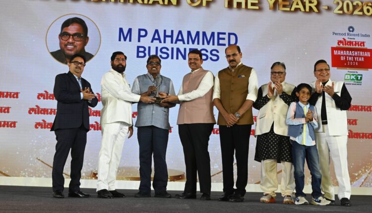 ମାଲାବାର ଗ୍ରୁପ ଅଧ୍ୟକ୍ଷ ଏମ ପି ଅହମ୍ମଦଙ୍କୁ ମହାରାଷ୍ଟ୍ର ମୁଖ୍ୟମନ୍ତ୍ରୀ ଦେବେନ୍ଦ୍ର ଫଡନାଭିସଙ୍କ ଦ୍ୱାରା ‘ମହାରାଷ୍ଟ୍ରିଆନ ଅଫ ଦି ଇୟର ଆୱାର୍ଡ ୨୦୨୬’ ପ୍ରଦାନ