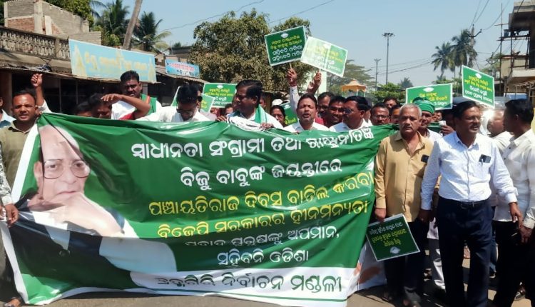 ପଞ୍ଚାୟତିରଜ ଦିବସ ବାତିଲି କରିବା ପ୍ରତିବାଦରେ ବ୍ରହ୍ମଗିରି ବିଜେଡିର ଧାରଣା