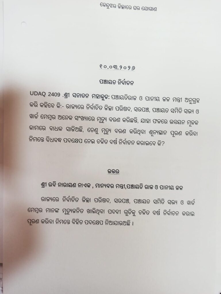ଭୁବନେଶ୍ଵର,୧୦/୦୩:ରାଜ୍ୟରେ ପଞ୍ଚାୟତ ସ୍ତରର କିଛି ପଦବୀ ମୃତ୍ୟୁ ଜନିତ କାରଣରୁ ଖାଲି ପଡ଼ିଥିବାରୁ ସେଗୁଡ଼ିକୁ ପୂରଣ କରିବା ପାଇଁ ଚଳିତ ବର୍ଷ ଉପ ନିର୍ବାଚନ କରାଯିବ। ଏହି ଖାଲି ପଦବୀଗୁଡ଼ିକୁ ଶୀଘ୍ର ଭର୍ତ୍ତି କରିବାକୁ ପଞ୍ଚାୟତି ରାଜ ବିଭାଗ ପକ୍ଷରୁ ପଦକ୍ଷେପ ନିଆଯାଉଛି।ବିଧାନସଭାରେ ବିଧାୟକ ସନାତନ ମହାଙ୍କୁଡଙ୍କ ପ୍ରଶ୍ନର ଉତ୍ତରରେ ପଞ୍ଚାୟତି ରାଜ ମନ୍ତ୍ରୀ ଲିଖିତ ଭାବେ ଏହି ସୂଚନା ଦେଇଛନ୍ତି। ମନ୍ତ୍ରୀଙ୍କ କହିବା ଅନୁଯାୟୀ, ରାଜ୍ୟର ବିଭିନ୍ନ ଜିଲ୍ଲାରେ ନିର୍ବାଚିତ ଜିଲ୍ଲା ପରିଷଦ ସଦସ୍ୟ, ସରପଞ୍ଚ, ପଞ୍ଚାୟତ ସମିତି ସଭ୍ୟ ଓ ୱାର୍ଡ ମେମ୍ବରଙ୍କ ମୃତ୍ୟୁ ହେତୁ କିଛି ପଦବୀ ଖାଲି ପଡ଼ିଛି।
