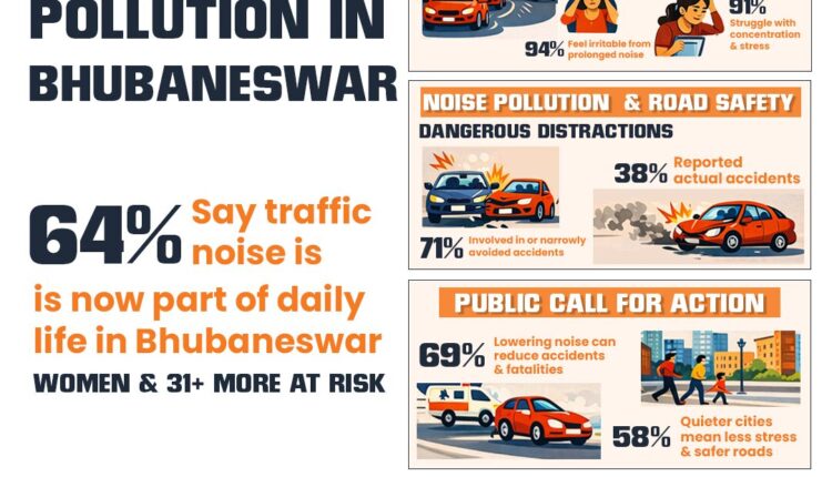 ଭୁବନେଶ୍ୱରରେ ବଢୁଥିବା ଶବ୍ଦ ପ୍ରଦୂଷଣକୁ ନେଇ ଜିନ୍ଦଲ ପାନ୍ଥର ଏକ ଗୁରୁତ୍ୱପୂର୍ଣ୍ଣ ସର୍ଭେ କରିଛି। ଏହି ଅନୁସାରେ, ସହରର ୮୬% ଲୋକ ମାନନ୍ତି ଯେ ଗତ ୨-୩ ବର୍ଷରେ ଗାଡ଼ିମଟରର ଶବ୍ଦ ବହୁତ ବଢ଼ିଯାଇଛି। ଏହି ଶବ୍ଦ ଯୋଗୁଁ ୯୪% ବାସିନ୍ଦା ସବୁବେଳେ ବିରକ୍ତି ଅନୁଭବ କରୁଥିବା ବେଳେ ୯୧% ଲୋକ ମାନସିକ ଚାପ ଓ ଏକାଗ୍ରତା କମିବା ଭଳି ସମସ୍ୟାର ସମ୍ମୁଖୀନ ହେଉଛନ୍ତି। ସବୁଠାରୁ ବଡ଼ କଥା ହେଉଛି, ପ୍ରବଳ ଶବ୍ଦ ଯୋଗୁଁ ୭୧% ଲୋକ ଦୁର୍ଘଟଣାର ଶିକାର ହେବାରୁ ଅଳ୍ପକେ ବର୍ତିଯାଇଛନ୍ତି ଏବଂ ୩୮% ଲୋକ ପ୍ରକୃତରେ ଦୁର୍ଘଟଣାର ସ୍ୱୀକାର ହୋଇଛନ୍ତି।