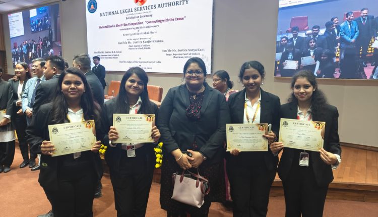 ନୂଆଦିଲ୍ଲୀ ଠାରେ କ୍ଷୁଦ୍ର ଚଳଚିତ୍ର ପ୍ରଦର୍ଶନ କରି ପୂର୍ବ ଜୋନରୁ ଭୁବନେଶ୍ୱରସ୍ଥିତ ୟୁନିଭେର୍ସିଟି ଲ କଲେଜ ଛାତ୍ରୀମାନେ ଜାତୀୟ ସ୍ତରରେ ରନର୍ସ ଅପ ଘୋଷିତ ହୋଇଛନ୍ତି । ନୂଆଦିଲ୍ଲୀସ୍ଥିତ ଜାତୀୟ ଆଇନ ସେବା ପ୍ରାଧିକରଣଙ୍କ ଆମନ୍ତ୍ରଣ କ୍ରମେ ଓଡିଶା ରାଜ୍ୟ ଆଇନ ସେବା ପ୍ରାଧିକରଣଙ୍କ ପକ୍ଷରୁ ଖୋର୍ଦ୍ଧା ଜିଲ୍ଲା ଆଇନ ସେବା ପ୍ରାଧିକରଣ ସଚିବ ସାଲୋମୀ ସାହୁଙ୍କ ନେତୃତ୍ୱରେ ୟୁନିଭେର୍ସିଟି ଲ କଲେଜ ଦ୍ଵିତୀୟ ବର୍ଷ ଛାତ୍ରୀ ଜାଗୃତି ମାଝୀ, ସାନିଆ ଖାନ, ସ୍ମୃତିଶିଖା ସାହୁ, ଆଦ୍ୟାଦେବପ୍ରଜ୍ଞା ପଟ୍ଟନାୟକ ଓ ଶ୍ରୀମୟୀ ମହାପାତ୍ର ଏହି ପ୍ରତିଯୋଗିତାରେ ଭାଗ ନେଇଥିଲେ । ନୂଆଦିଲ୍ଲୀ ଠାରେ ଜାତୀୟ ଆଇନ ସେବା ପ୍ରାଧିକରଣଙ୍କ ଦ୍ଵାରା ଆୟୋଜିତ କ୍ରାନ୍ତିଜ୍ୟୋତି ସାବିତ୍ରୀ ବାଇ ଫୁଲେଙ୍କ ଜନ୍ମ ଦିନ ପାଳନ ଅବସରରେ ଆୟୋଜିତ ଏହି ପ୍ରତିଯୋଗିତାରେ ଛାତ୍ରୀମାନେ ଯୋଗ ଦେଇଥିଲେ । ସର୍ବୋଚ୍ଚ ନ୍ୟାୟାଳୟ ମୁଖ୍ୟ ବିଚାରପତି ତଥା ପୃଷ୍ଠପୋଷକ ଜଷ୍ଟିସ ସଂଜୀବ ଖାନା ଏବଂ କାର୍ଯ୍ୟ ନିର୍ବାହୀ ଅଧକ୍ଷ ତଥା ଉଚ୍ଚତମ ନ୍ୟାୟାଳୟ ବିଚାରପତି ଜାତୀୟ ଆଇନ ସେବା ପ୍ରାଧିକରଣ ଜଷ୍ଟିସ ବି. ଆର. ଗବାଇ, ଜଷ୍ଟିସ ସୂର୍ଯ୍ୟକାନ୍ତ ଏବଂ ସଦସ୍ୟ ସଚିବ ଜାତୀୟ ଆଇନ ସେବା ପ୍ରାଧିକରଣ ଏସ. ସି ମୁଙ୍ଗେତ ପ୍ରମୁଖଙ୍କ ଠାରୁ ଛାତ୍ରୀ ମାନେ ପୁରସ୍କାର ଗ୍ରହଣ କରିଛନ୍ତି । ଓଡିଶାରୁ ଶ୍ରେଷ୍ଠ ବିବେଚିତ ହୋଇଥିବା ଖୋର୍ଦ୍ଧା ଜିଲ୍ଲା ଆଇନ ସେବା ପ୍ରାଧିକରଣଙ୍କ ସଚିବ ଏବଂ ଆଇନ ଛାତ୍ରୀମାନେ କ୍ଷୁଦ୍ର ଚଳଚ୍ଚିତ୍ର ଭିବାଗରେ ନୂଆଦିଲ୍ଲୀରେ ଉପସ୍ଥିତ ରହି ଇଷ୍ଟ ଜୋନ ପାଇଁ ମାନ୍ୟବର ମୁଖ୍ୟ ବିଚାରପତିଙ୍କ ଠାରୁ ପାନ ଇଣ୍ଡିଆ ଜୋନାଲ ଲେବଲ ସଂକ୍ଷିପ୍ତ ଚଳଚ୍ଚିତ୍ର ପ୍ରଦର୍ଶନରେ ଏହି ରନର୍ସ ଅପ ପୁରସ୍କାର ଗ୍ରହଣ କରିଛନ୍ତି ।