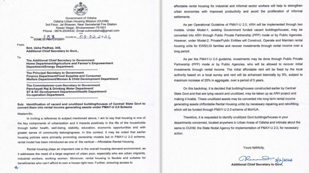 ସହର ଅଞ୍ଚଳରେ ଖାଲି ପଡ଼ିଥିବା କେନ୍ଦ୍ର ଓ ରାଜ୍ୟ ସରକାରଙ୍କ ଘର ଓ ଭବନକୁ ଭଡ଼ାଘର ଭାବେ ପରିବର୍ତ୍ତନ କରାଯିବ । ହାଉସିଂ ଓ ଅର୍ବାନ ଡେଭଲପମେଣ୍ଟ ବିଭାଗର ଅତିରିକ୍ତ ମୁଖ୍ୟ ସଚିବ ଉଷା ପାଢ଼ୀ ସମସ୍ତ ବିଭାଗକୁ ଏହି ଖାଲି ଭବନର ସୂଚନା ଦେବାକୁ ନିର୍ଦ୍ଦେଶ ଦେଇଛନ୍ତି । ସହରକୁ କାମ ପାଇଁ ଆସୁଥିବା ଶ୍ରମିକ, କର୍ମଜୀବୀ ମହିଳା ଓ ଗରିବ ପରିବାର ଲୋକ ଲାଭବାନ ହେବେ । ସ୍ଥାନୀୟ ପ୍ରଶାସନ ଭଡ଼ା ନିର୍ଦ୍ଧାରଣ କରିବ । ପ୍ରତି ୨ ବର୍ଷରେ ୮ ପ୍ରତିଶତ ବୃଦ୍ଧି ହେବ, ୫ ବର୍ଷରେ ସର୍ବାଧିକ ୨୦ ପ୍ରତିଶତ ପର୍ଯ୍ୟନ୍ତ। ଏହି ପଦକ୍ଷେପ ସହର ଗରିବଙ୍କ ପାଇଁ ସୁରକ୍ଷିତ ଓ ସସ୍ତା ଆବାସ ସୁବିଧା ଦେବାରେ ମାଇଲସ୍ଟୋନ୍ ହେବ ବୋଲି ସରକାର କହିଛନ୍ତି ।