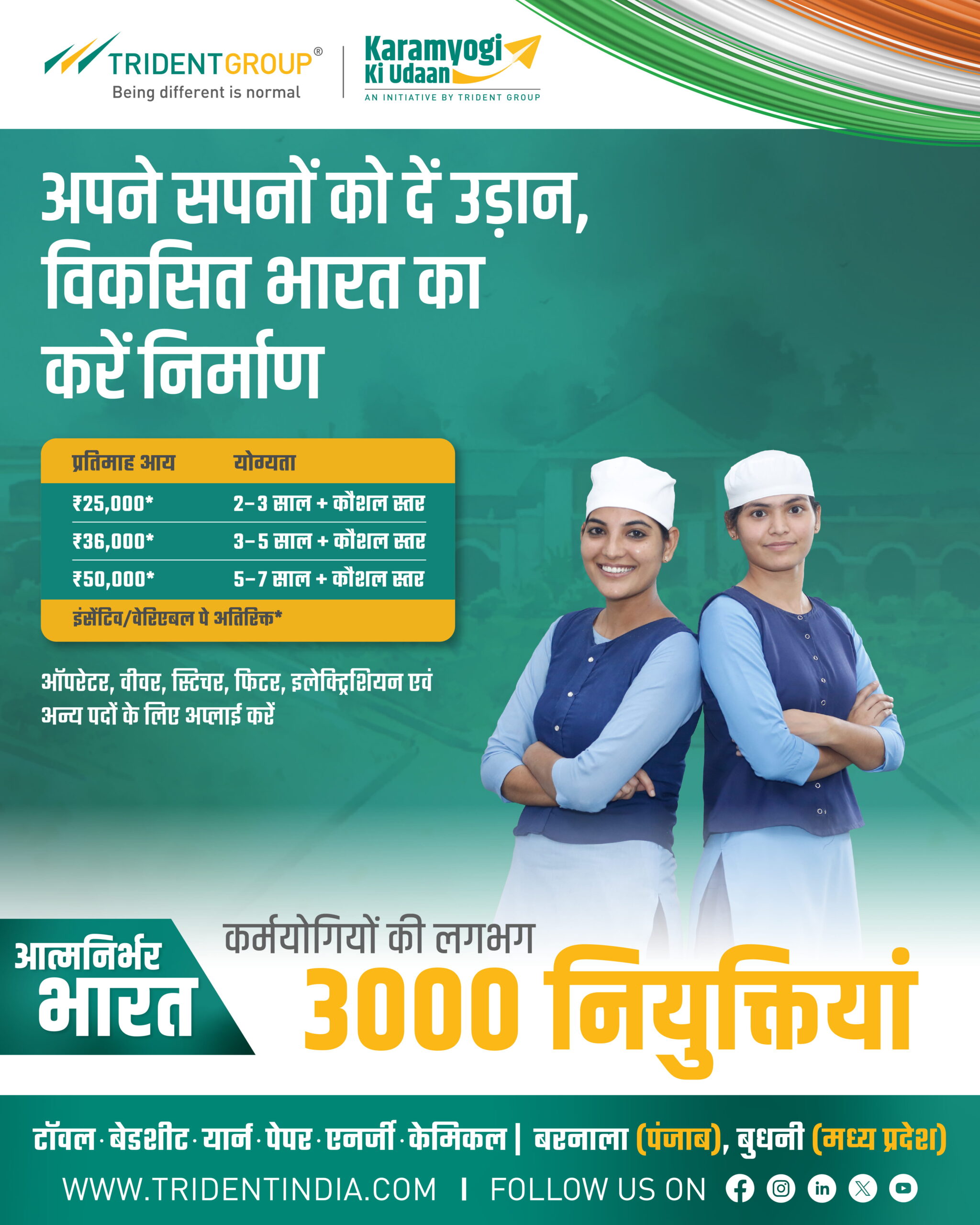 ଟ୍ରାଇଡେଂଟ ଲିମିଟେଡ ପକ୍ଷରୁ ବଡ ନିଯୁକ୍ତି ସୁଯୋଗ ଘୋଷଣା