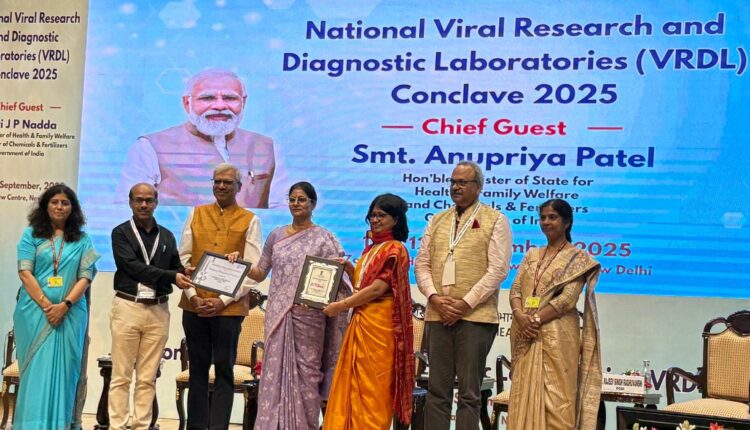 ଉଚ୍ଚକାର୍ଯ୍ୟକ୍ଷମ ପ୍ରୟୋଗଶାଳାଗୁଡ଼ିକୁ ସମ୍ମାନିତ କରିବା ଏବଂ ଜାତୀୟ ଭିଆର୍ଡିଏଲ୍ ନେଟୱାର୍କର ବିକାଶ ପ୍ରକ୍ରିୟାକୁ ମୂଲ୍ୟାଙ୍କନ କରିବା ପାଇଁ ସ୍ୱାସ୍ଥ୍ୟ ଗବେଷଣା ବିଭାଗ (ଡିଏଚ୍ଆର) ଦ୍ୱାରା ନୂଆଦିଲ୍ଲୀର ମାନେକ୍ଶା କେନ୍ଦ୍ରରେ ଆୟୋଜିତ ଏକ ସ୍ୱତନ୍ତ୍ର ଭିଆର୍ଡିଏଲ୍ ସମ୍ମିଳନୀରେ ଏହି ପୁରସ୍କାର ପ୍ରଦାନ କରାଯାଇଥିଲା।